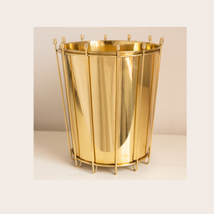 Les Poubelles are a suite of brass receptacles transcribed into various shapes, utility objects intended to prompt delight. The delicately hammered surfaces and cross-hatch designs bring texture and flair to nooks of any room.