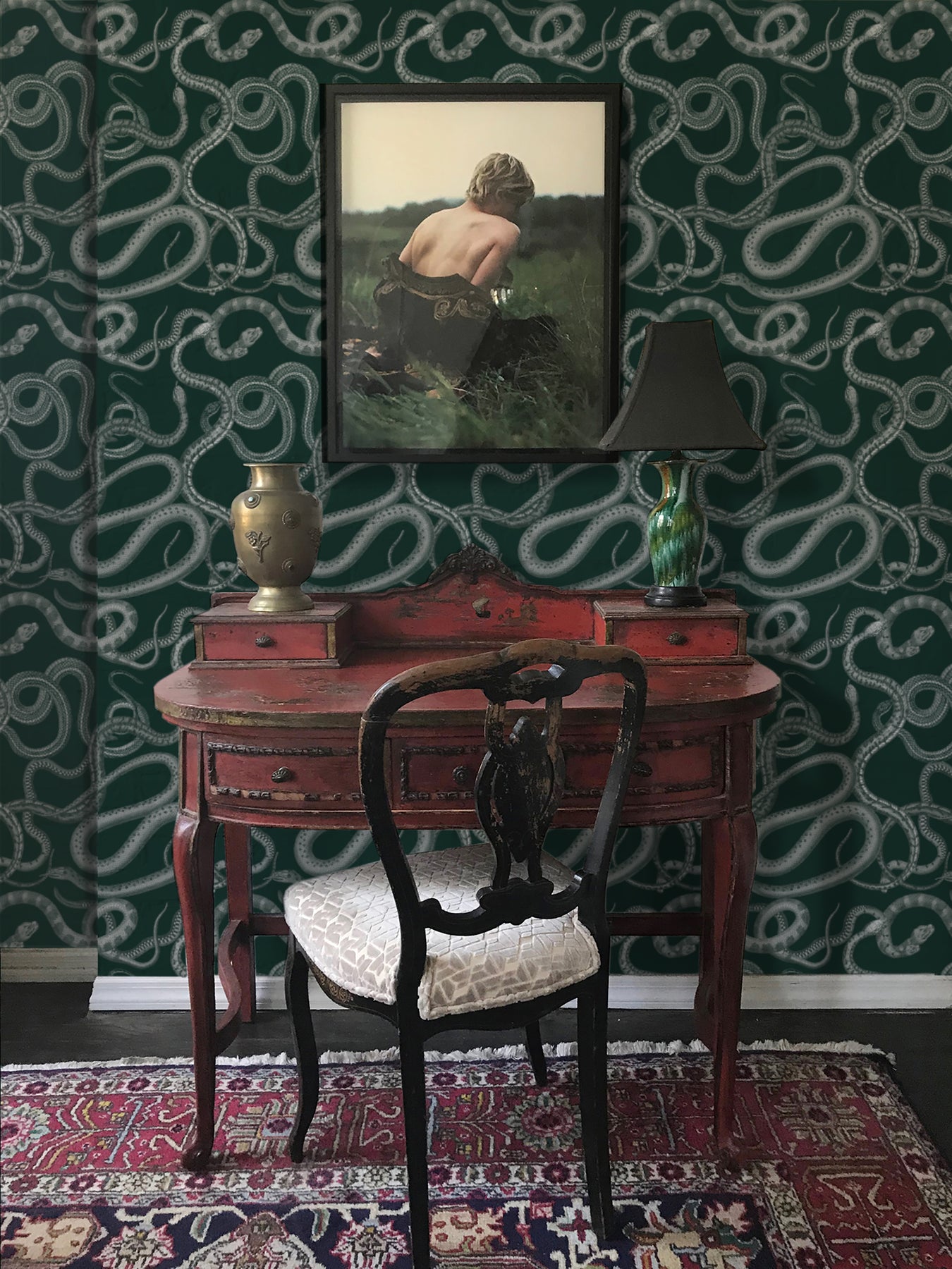 Just like the glare of the legendary Gorgon herself, Medusa will stop a viewer in their tracks. A riotous tousle of serpentine verve, this opulent graphic radiates with untamed beauty. Seductive and mysterious, a sundry tangle of snakes writhe against a cast of varied hues. Available in Indigo, Emerald and Fawn.